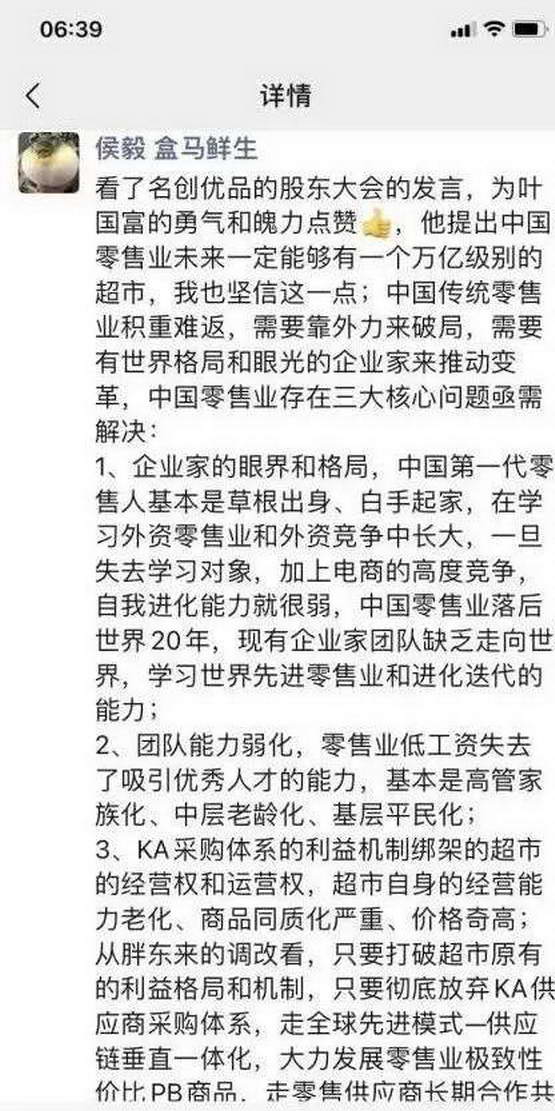 在盒马蹉跎多年的侯毅就对此深恶痛绝,并在第一时间点赞永辉调改:KA 采购体系的利益机制,绑架超市的经营权和运营权。