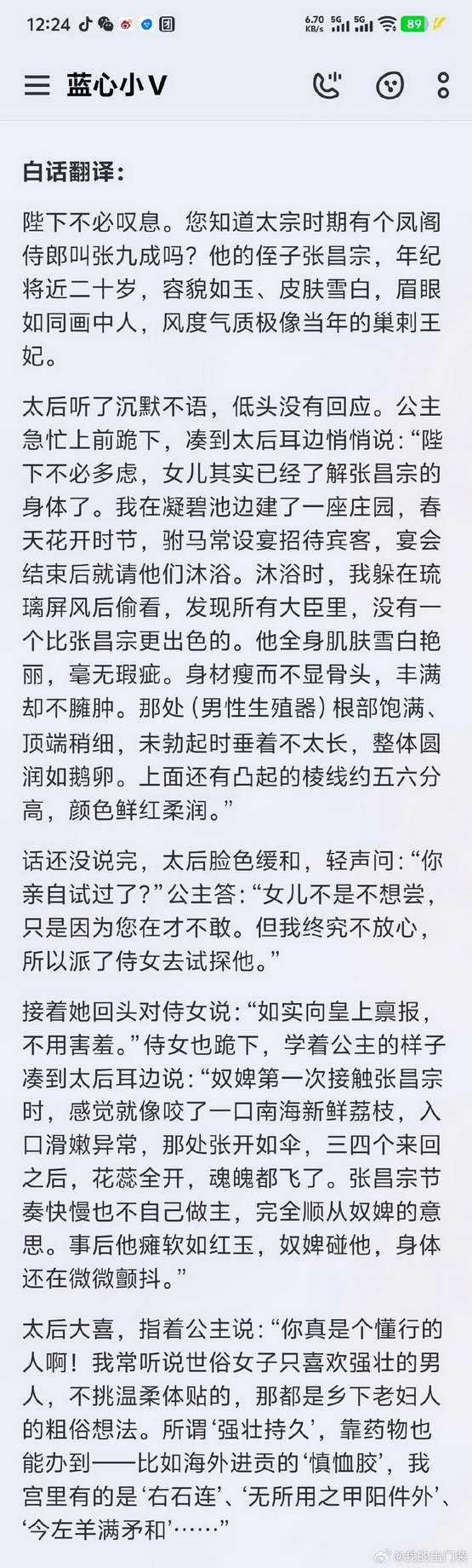 “近闻尚舍奉御柳模自言子良宾洁白美须眉。左监门卫长史侯祥云阳道壮伟,过于薛怀义,专欲自进堪奉宸内供奉。”—— 有人说自己肤白貌美,器大活好,比薛怀义的大多了!要求竞争上岗!
