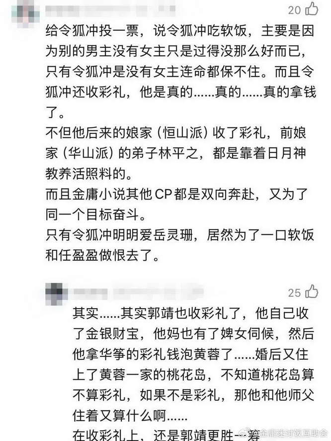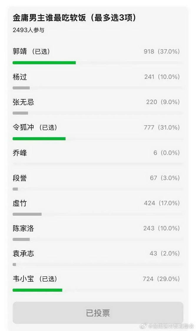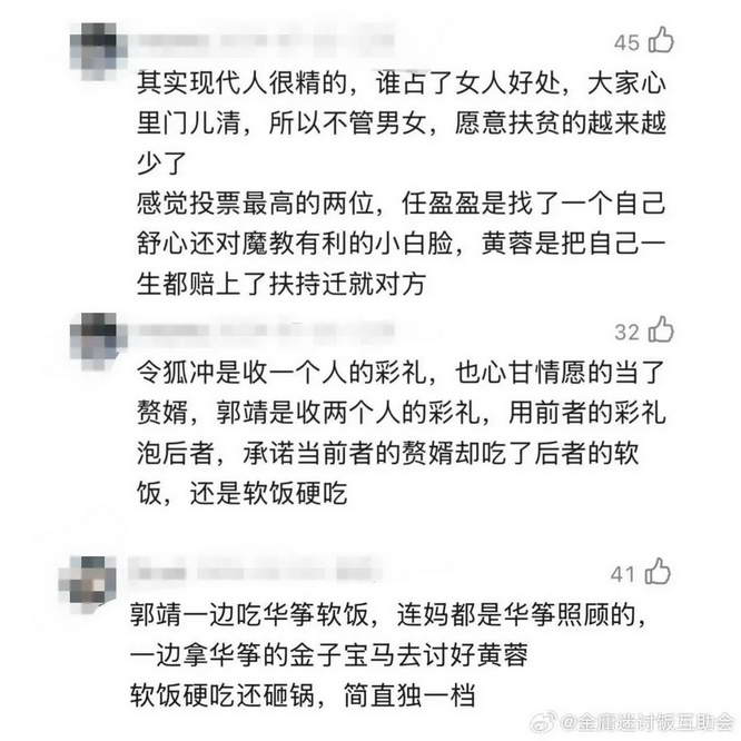 金庸男主谁最吃软饭?谁是真正的赘。婿?郭靖和令狐冲投票射出去了