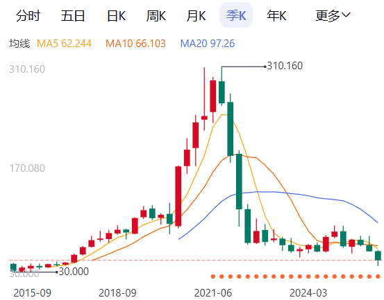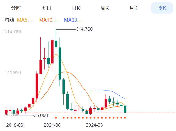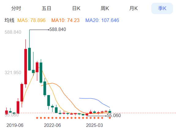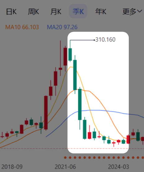 不过,有点尴尬的是,你回归就回归嘛,怎么一口气从巅峰跌了 80% ?