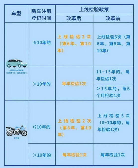 我们现在的年检制度,普通小客车是 6 年内免检,10 年内检 2 次,10 年后每年检一次。
