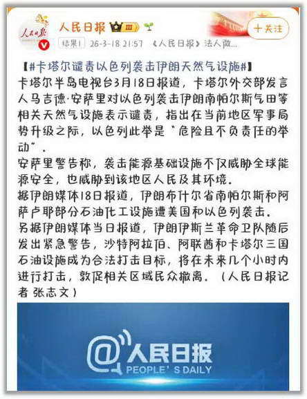 另一个是以色列把伊朗的天然气田炸了。作为回应,伊朗袭击了卡塔尔的世界最大液化天然气工厂,工厂严重受损,每日 1200 万立方米天然气产能中断。