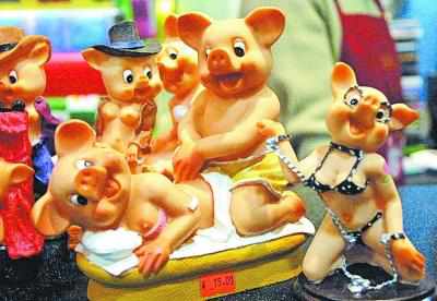 喻志勇说,2002年在江汉路一家饰品店出售这种“流氓猪”系列摆件,江岸区大智路工商所因为该“流氓猪”涉嫌不良文化,有悖精神文明,予以查扣。