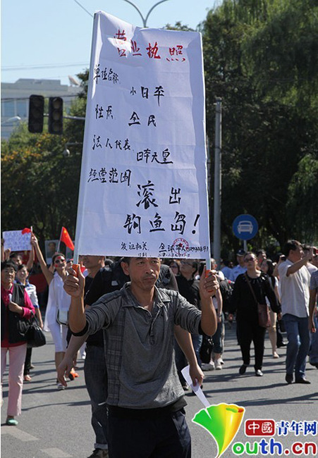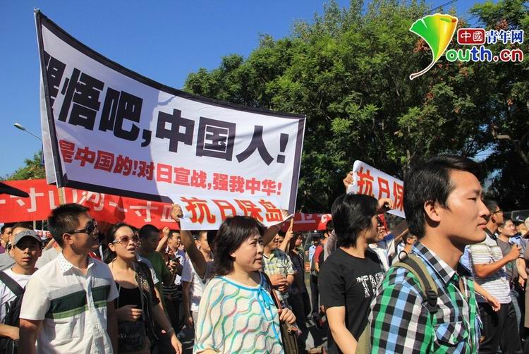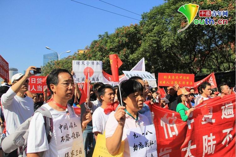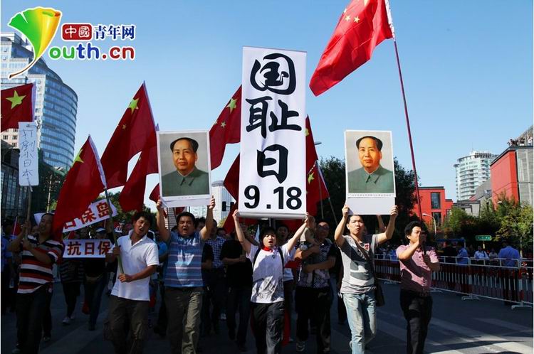 2012年9月18日是“九一八”事变81周年纪念日,当日上午,北京不少青年上街举行理国游行,抗议日本“购岛”行为,记者看到现场秩序一派井然。张楠张炎良 摄 图片来源:中国青年网