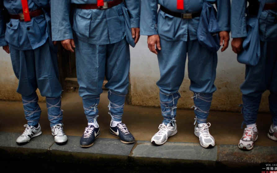 9月21日,江西井冈山,几位身穿红军服装,脚踏名牌运动鞋的中层干部正在参观毛泽东故居。中共“十八大”召开前夕,19家中外媒体的30位记者对井冈山干部学院进行了观摩探访。