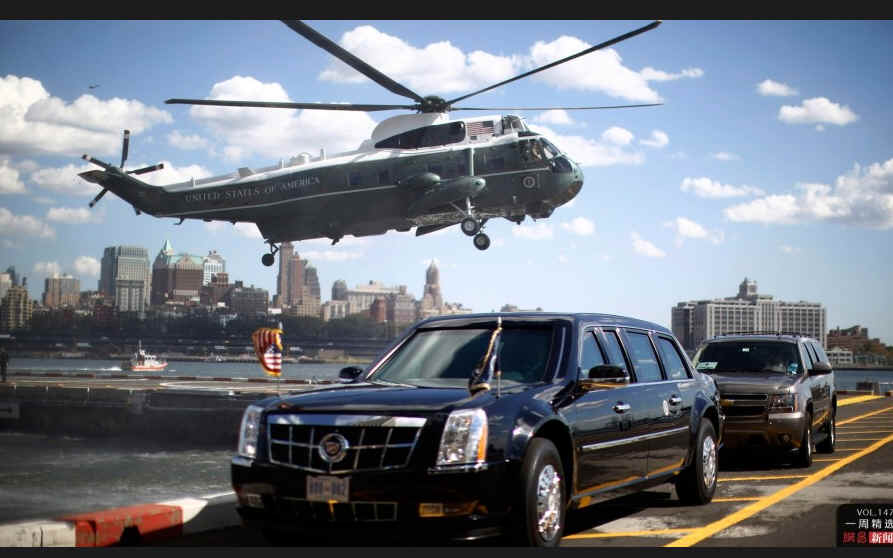 当地时间9月24日,美国纽约,奥巴马乘坐“海军陆战队一号”专机前去参加联合国大会。REUTERS/Jason Reed
