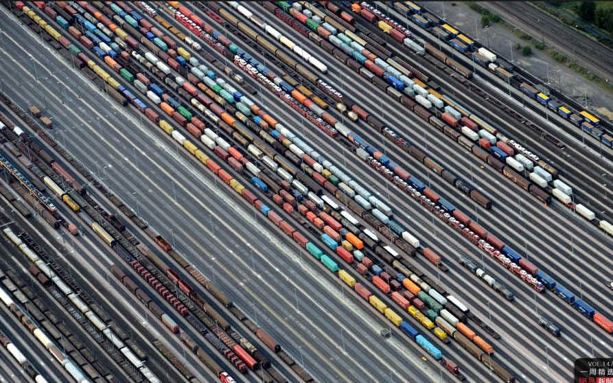 当地时间9月23日,德国汉堡附近一处火车调度场,货运列车上装载着各种集装箱和汽车。REUTERS/Fabian Bimmer