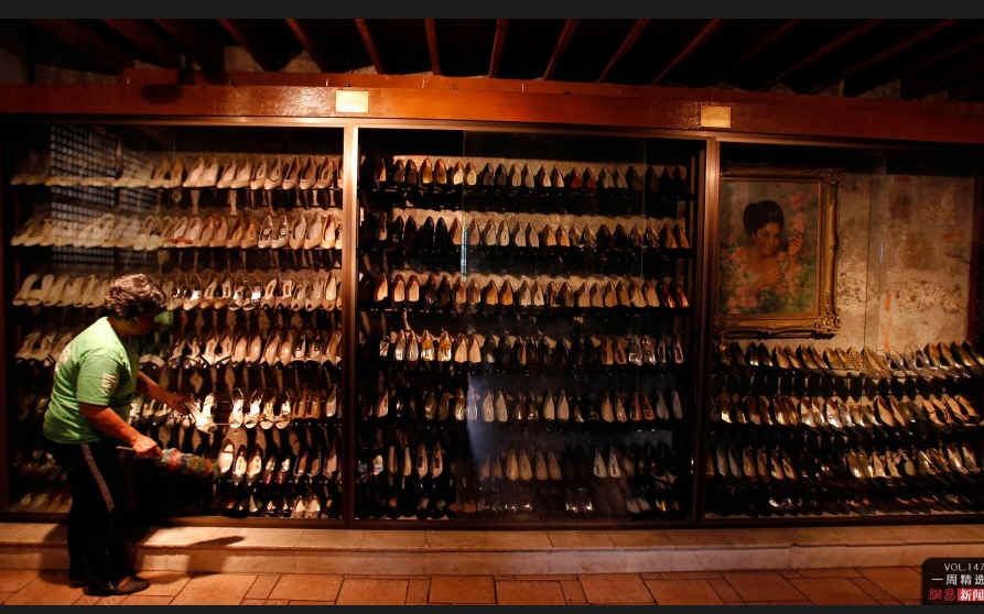 当地时间9月26日,菲律宾马里基纳的鞋类博物馆,一名志愿者正在清洁曾属于菲律宾前第一夫人伊梅尔达·马科斯的上千双名贵鞋子。1986年2月,马科斯总统被人民力量运动推下台,伊梅尔达同丈夫出逃被迫流亡美国,这些名贵的鞋子、衣服和其他个人物品在那时被遗留在了国内。目前不少鞋子由于白蚁,气候和疏于保养等原因已经发霉。REUTERS/Romeo Ranoco