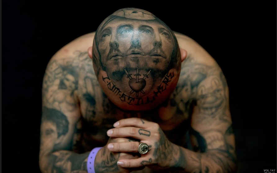 当地时间9月28日,英国举行第八届“伦敦纹身大会”,一名男子展示身上的复杂图案。AFP PHOTO/ADRIAN DENNIS