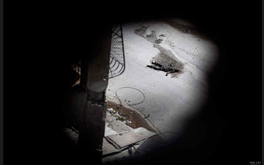 当地时间9月24日,叙利亚阿勒颇,街头一具士兵的尸体已经腐烂。AP Photo/Manu Brabo