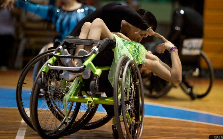当地时间9月22日,墨西哥坎昆,两名残疾舞者正在参加一场轮椅舞蹈比赛。REUTERS/Victor Ruiz Garcia