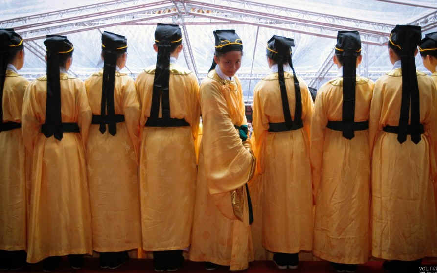 9月28日,台北孔庙,几名学生身穿古装参加孔子2562周年诞辰释奠典礼。REUTERS/Yi-ting Chung