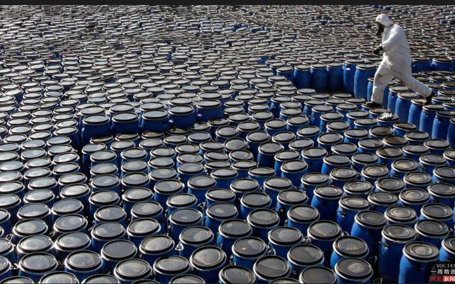 当地时间9月26日,白俄罗斯明斯克西南部一处村庄,工人在装有杀虫剂的桶上行走。在清理污染的行动中,人们从土地中总共提取出大约640吨杀虫剂,其中包括DDT。REUTERS/Vasily Fedosenko
