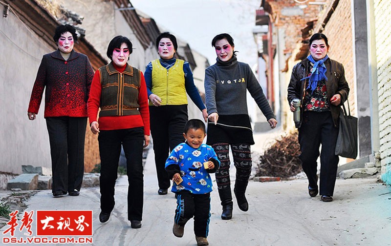 中国,羲皇:在一场表演过后,这些戏剧表演者步行回家。1998年诞生的羲皇剧团一直保留了当地戏曲流派特色。现在他们主要以农民的生活和爱情为主题。