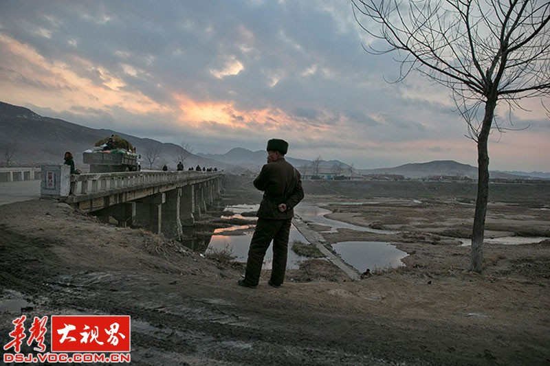 朝鲜,Kuwol山:一名朝鲜士兵站在一条运河附近。