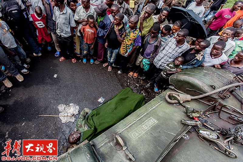 刚果,戈马:基因叛军控制了这个城市后,一名刚果士兵的尸体躺在马路上。