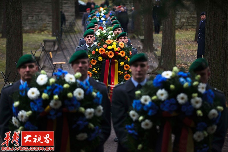 德国柏林:德国士兵列队进行献花仪式,致一战中牺牲的德国犹太士兵纪念馆。