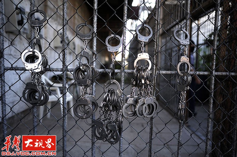 萨尔瓦多,圣萨尔瓦多:LaEsperaza监狱内挂着的手铐,此监狱计划关押800名囚犯现在却严重超标,达到4700人。