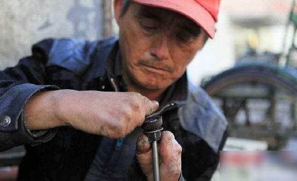 记得在我很小的时候父亲就在修自行车,那时候自行车是个很稀罕的东西,那个时候我觉得我老爸干这个没什么不好,而且很骄傲,每次跟着老妈或者姐姐去给老爸送饭的时候,也在一旁看看他修车,因为那个时候街边是热闹的地方,人来人往,比家里好玩,何况他总会变戏法的给我一块糖,那个时候我感觉老爸很厉害,什么车在他手上都能修好,邻里乡亲都会为这个事感谢他,那个时候我感觉老爸是高大的好厉害的,不知道这个修车是件很辛苦的事,只是在家里待得少,陪我们的时间少,我起来时他已经出去了,他晚上回来,大部分时间我和姐姐已经睡了,特别是大冬天,天气寒冷,冷风吹在脸上像刀割一样,大早上补胎,要把结了冰的水面弄开,再在里面检查轮胎哪里漏气,手冻得和胡萝卜一样,又不敢抓怕弄破了,没晚回家都要拿煤油或者汽油洗洗满是机油的手,再上点防裂的药,在我记忆当中老爸的手就是这样黑黑的,布满老茧。