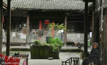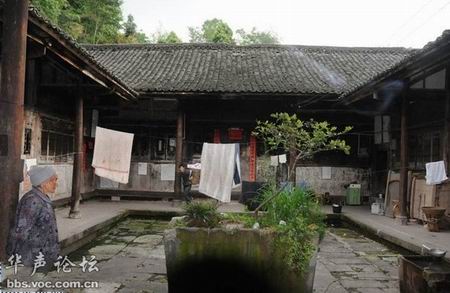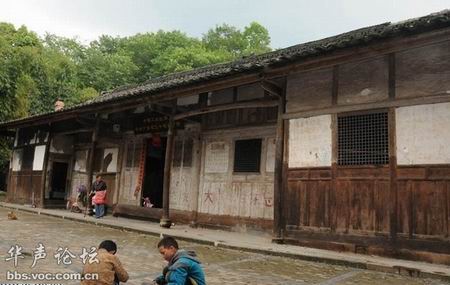屋坚强:震中一座百年老宅巍然屹立, 坐落于震中芦山县龙门乡古城村山脚下的张家大院,建于清朝同治年间,地震中除了屋脊脱落几块瓦片外,没任何损伤,7户张姓人家震后在这里照常生活。张家大院为瓦木结构四合院,坐落于芦山县龙门乡古城村山脚下,主人之一张大金说:“建于清朝同治年间的老宅,在地震中除了屋脊脱落几块瓦片外,没有任何损伤。”长征期间这里曾是红30军司令部。