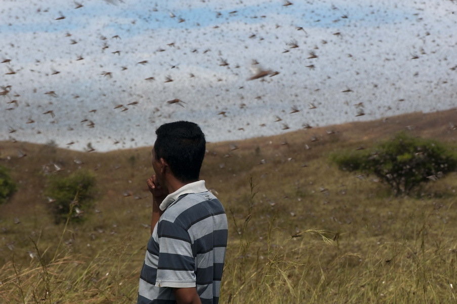 马达加斯加目前蝗灾肆虐。据世界粮农组织估计,如果不采取有效措施控制,蝗虫将在今年9月前破坏全国三分之二的农田,而马达加斯加人口的九成以上都是农业人口。新华社记者 何险峰摄