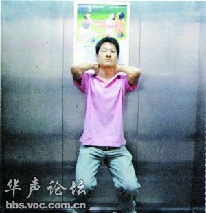 哇~~~犀利~~~~4只手?双手张开紧贴电梯?然后又要抱头?神人啊~~~~呢个人有几多只手?