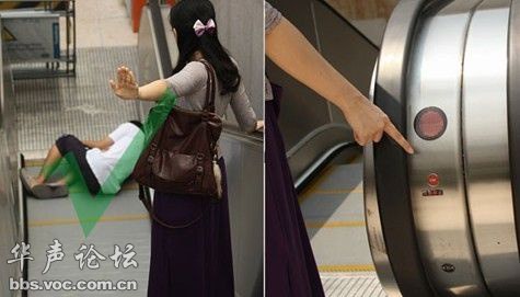 每台扶梯的上、下和中部都有一个急停按钮,一旦发生扶梯意外,靠近按钮的乘客应保持清醒的安全意识,第一时间按下按钮,扶梯会自动停下,这样能有效降低事故的伤害。