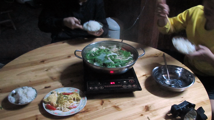 在三江吃的午饭,特色米线,那碟小炒是我们抢老板的,原来是老板做好准备自己吃的,味道很好。