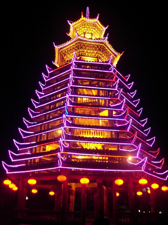 吃过屋主做的晚饭后,俺们到从江县城逛了一圈。从那起,我才知道贵州大部分旅游城市,都会搞亮化工程,政府买单。
