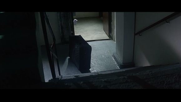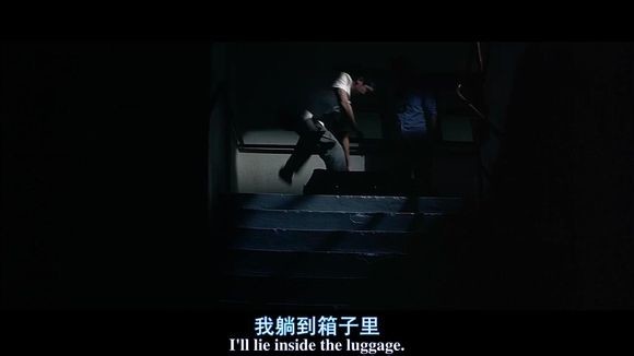 神探砍完尸体后,迅速跑到一旁,拿起一个行李箱往外走,