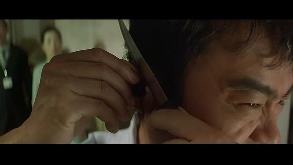 这时候神探从身上拿出一把小刀,放在自己耳朵上