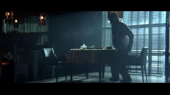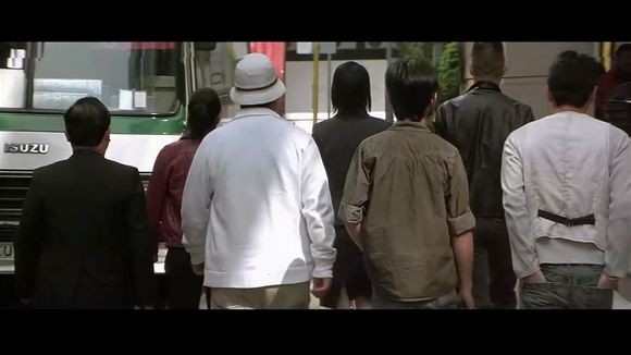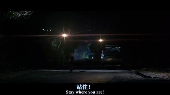 高志伟化身的其中一个鬼回头观看神探,注意,前面六个走了,其中一个还在观看,看表情,很冷酷。