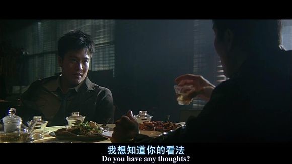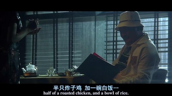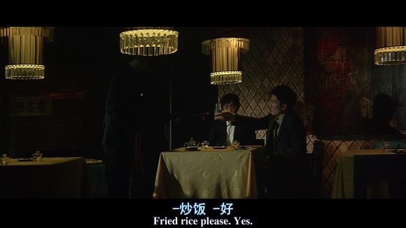 注意点餐细节,高志伟点的是红烧翅,蒸斑鱼,半只炸子鸡。回过来看何家安,何家安说的炒饭就好。这是在寓意这里的东西很贵,高志伟只不过是一个普通警察,和何家安是重案组的头,工资上差别肯定很大。后来高志伟点起一根雪茄,像一个高级阶层一样,和警察身份格格不入。这是在暗示,高志伟很不对劲。