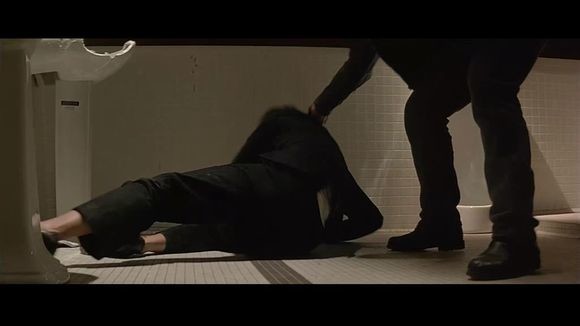 愤怒人格一把抓着神探的脑袋向玻璃砸去,玻璃破碎,