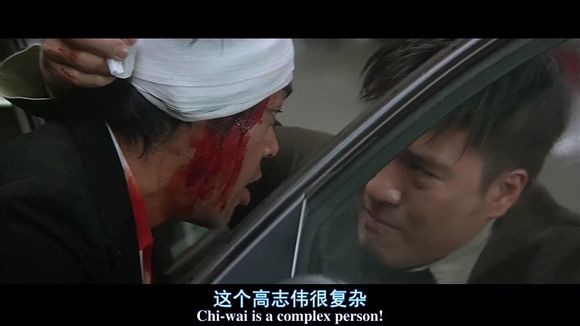 镜头转到外面,何家安给神探包扎头部,而神探和何家安叙述他的发现,高志伟内心有七个鬼