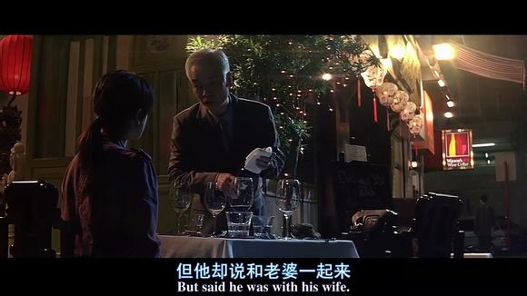 神探来到饭店,第三视角,神探手抓着什么,在神探视角,神探是在抓着他老婆的手。