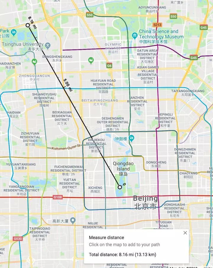这距离在北京差不多相当于五环,圆明园那块儿: