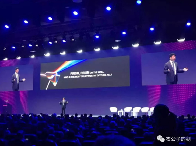 这两年,60后的郭平英文一直在进步。上个月的巴塞罗那MWC,华为轮值董事长郭平用赣州英文念到:Prism, Prism on the wall, who is the mosttrustworthy of them all? (棱镜棱镜告诉我,谁是世界上最安全的通信设备?)在场的西方人对这出妙笔生花开怀大笑,还有几个捧场的吹了口哨。