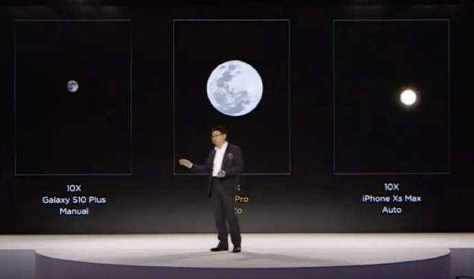 华为高管对比三星、苹果和华为拍月亮的效果,中间是华为P30