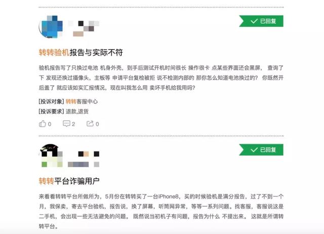 根据黑猫投诉上的爆料,有人在某平台上买二手机,收到货后发现,实物和官方验机中心出具的报告有不小的出入。比方说,苹果手机的原屏被换成了高仿屏、听筒故障甚至无法开机。