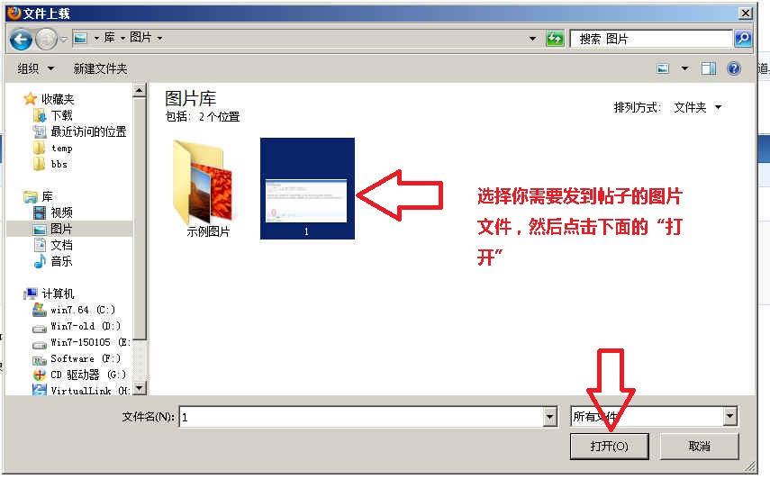在弹出的窗口选择你需要上传的图片文件