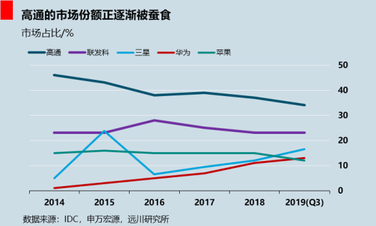 更不用说手机厂商前三名三星、华为和苹果,全部抛开高通,用ARM的IP,造自家的处理器。高通现在还能靠着和米OV的合作,暂时保证市场份额,可小米的松果还是昨日之事,谁能保证小弟羽翼渐丰后不能自力更生?
