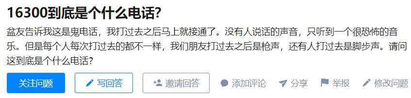 「.16300.」是一个电信的官方服务号码,打过去以后马上接通,还会发出诡异的声响。