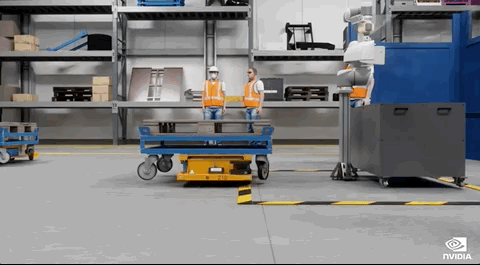 这是英伟达在Omniverse上更新了另一项数字孪生技术(Issac.Digital.Twin),将机器人AI放到虚拟环境中训练完成后,可以直接部署到真实环境中。
