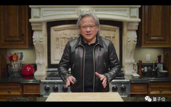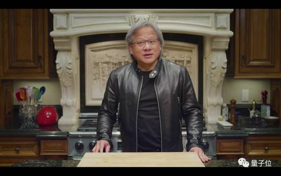 画面中老黄的厨房、标志性的皮衣,甚至他的表情、动作、头发……全都是合成出来的。