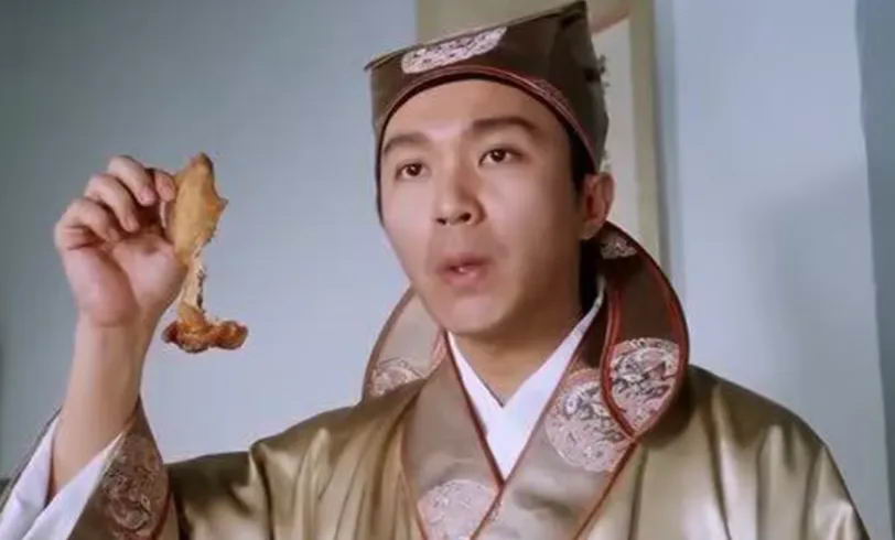 这就是《唐伯虎点秋香》开头那段了:宁王要募唐伯虎,唐伯虎装病,“烤鸡翅我喜欢吃!”