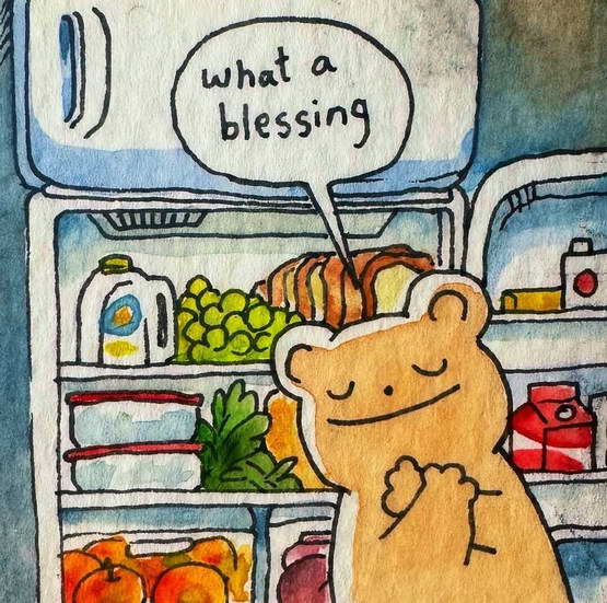 吃到刚出锅的饭,热气扑在脸上。