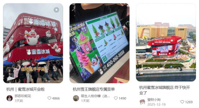 不仅如此,在过去的 2025 年,蜜雪冰城开了十多家旗舰店,从郑州开到了杭州、成都、重庆、青岛、石家庄、西安、武汉等等,到处 “攻打” 省会。