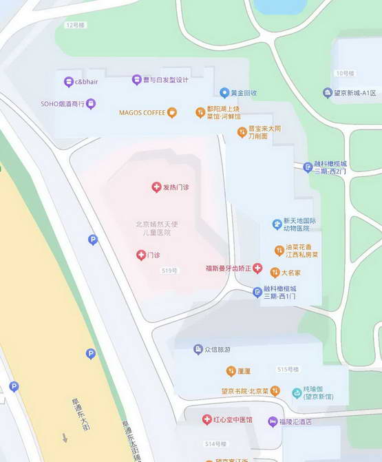 而李亚鹏老师的天使医院,恰好在望京非常好的地段,如图 1。