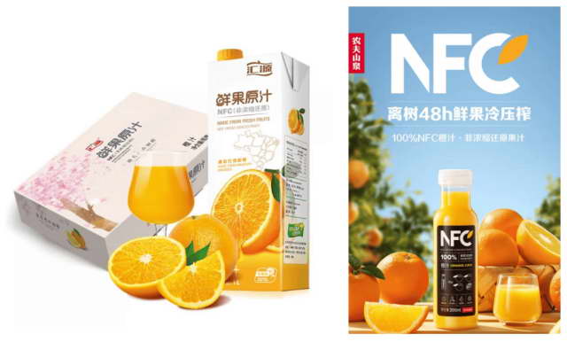 左边是汇源 NFC 果汁,右边是农夫山泉 NFC 果汁
